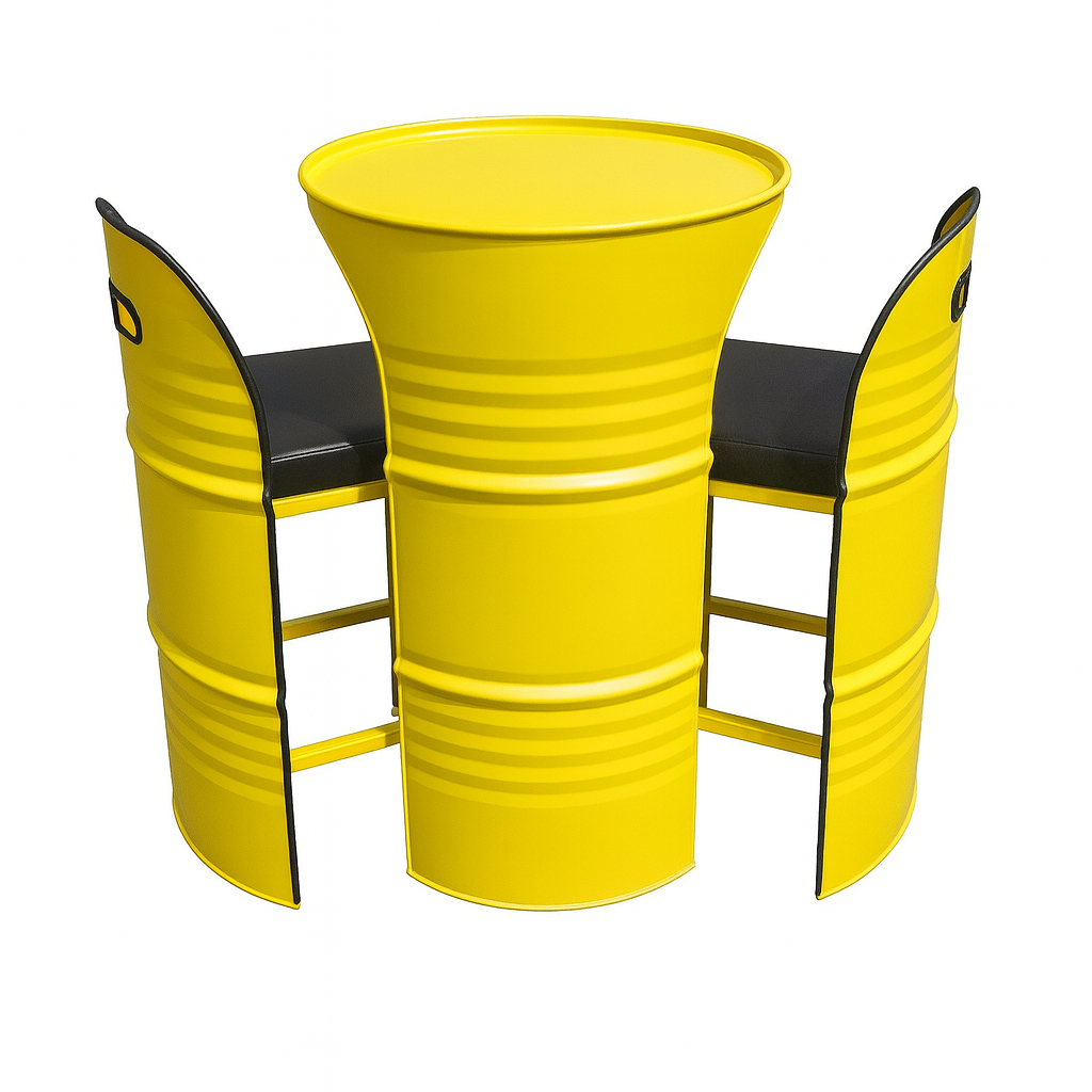 Fabriqués en France, nos combos associent deux tabourets ergonomiques à un bidon métallique revisité pour créer un ensemble unique, robuste et esthétique.